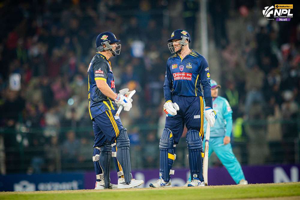 काठमाडौं । नेपाल प्रिमियर लिग (एनपीएल) अन्तर्गत विराटनगर किंग्सले काठमाडौँ गोर्खाजलाई पराजित गरेको छ । शनिबार सम्पन्न खेलमा विराटनगरले काठमाडौँलाई ५ विकेटले पराजित गरेको हो ।