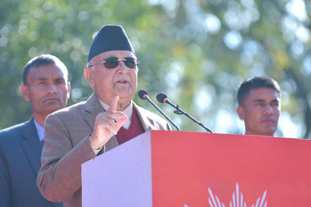 अब यो संविधानअनुसार नबनेको असंवैधानिक चिजलाई तपाईंले हटाउनलाई के ले रोक्यो ? त्यसो भएर अब कुनै नाटक गरेर देश चल्नेवाला छैन । फागुन २१ मा निर्वाचन यो सरकारले सोचेकै छैन त्यतापट्टि, भ्रम किन पाल्ने हामीले ? अहिले पनि नेताहरूलाई जान निषेध गर्ने, एयरपोर्ट बन्द गर्ने, १५–२० जना, ६० जना जेएनजीका नाममा केही हुल्लट तत्त्वहरू आउँछन्, गेट तानतुन पार्छन्, भत्काउँछन् एयरपोर्टको, त्यो नरोक्ने ! भोलिपल्ट प्रहरीलाई ढुङ्गा मुढा गरेर लखेट् छन् । प्रहरीलाई प्रतिवाद गर्ने आदेश छैन । सरकार एसपी फिर्ता बोलाउँछ ! पहिले नै भाग्नुपथ्र्यो, किन अबेला भागिस ? जेएनजीलाई पहिले नै छोड्नु पथ्र्यो, किनपछि मात्र छोडिस् ? त्यही आरोप होइन एसपी फर्काउनुको ? अब उहाँरूलाई पुलिस पनि एमाले लाग्न थाल्यो । अब उहाँरूलाई अदालत पनि एमाले लाग्छ, सेना पनि एमाले लाग्छ, सशस्त्र प्रहरी पनि एमाले लाग्छ, कर्मचारी पनि एमाले लाग्छ । ‘रेबिज भएको एउटा जनावरले जतापति पानी देख्न थाल्छ ।’ यो त एएमालेमय देश हो । तपाईंहरु के गर्नुहुन्छ अब ? एमालेमय देश हो । एमालेले नेपाली सेनाका लागि काम गरेको छ । एमालेले प्रहरीका लागि काम गरेको छ । एमालेले प्रहरी जवानलाई दर्जाहीन अवस्थाबाट दर्जामा एमालेले उठाएको थियो । रासनको, पहिरनको, सबै कुराको सुबिधाको प्रबन्ध एमालेले गरेको थियो । नेपाली सेना कस्तो अवस्थामा थियो, बस्ने छाप्रो छैन, बङ्करमा बस्नु पथ्र्यो । ‘बङ्कर टु ब्यारेक’ भन्ने नारा नेकपा एमालेले दिएर बस्ने ठाउँसम्म, छाप्रोसम्म नेपाली सेनालाई एमालेले सारेको थियो । एमालेले सेनाका लागि, प्रहरीका लागि, कर्मचारीका लागि, किसानका लागि, मजदूरका लागि, नेपालीहरूका लागि सिंगै देशलाई विकसित र आधुनिकीकरण गर्ने बाटोमा अगाडि बढाएयो थियो । अनि तपाईंहरु झस्केर हुन्छ यतिबेला ? यतिबेला तर्सिएर हुन्छ ? नेकपा एमाले प्रिय छ सबैका लागि, त्यो त साँचो कुरा हो । सबैका लागि प्रिय छ ।