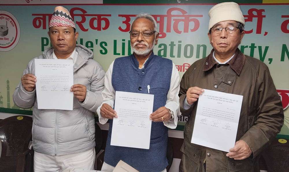 काठमाडौँ । जनता समाजवादी पार्टी, नागरिक उन्मुक्ति पार्टी नेपाल र राष्ट्रिय मुक्ति पार्टी नेपालीबीच कार्यगत एकता भएको छ ।