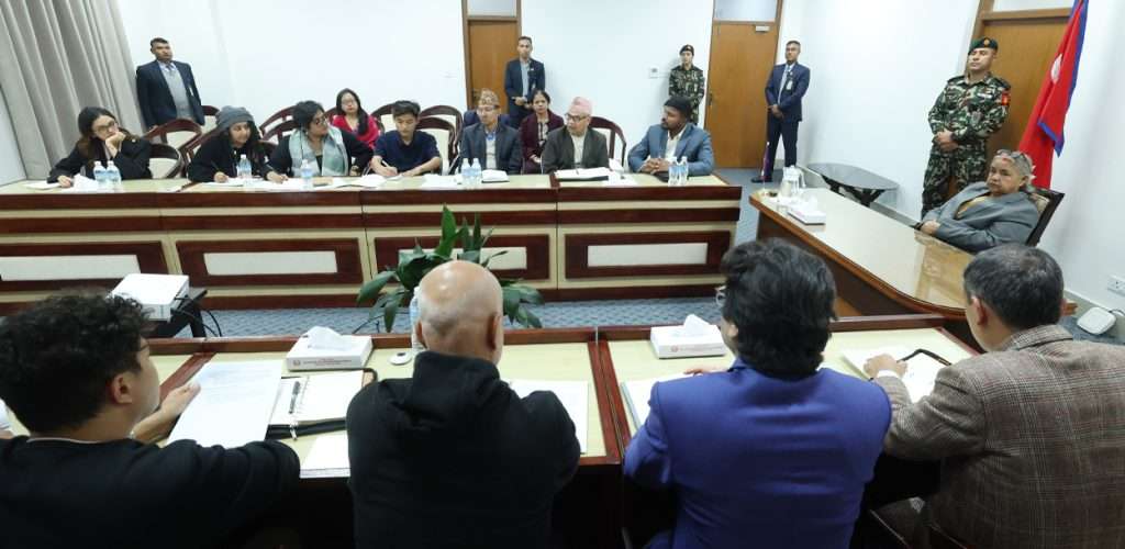 काठमाडौँ । प्रधानमन्त्री सुशीला कार्कीले आज जेनजी आन्दोलनका अगुवा प्रतिनिधिहरूसँग छलफल गरेकी छन् । सरकार र आन्दोलनकारीबीच हुन लागेको सम्झौताको मस्यौदालाई अन्तिम रूप दिने विषयमा छलफल भएको प्रधानमन्त्रीका प्रेस संयोजक रामबहादुर रावतले जानकारी दिए ।
