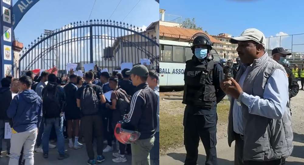 काठमाडौँ । अखिल नेपाल फुटबल संघ (एन्फा) ले अर्को बर्षको पुसमा ए डिभिजन लिग गर्ने भन्दै मिति सार्बजनिक गरेपछि खेलाडी आन्दोलित भएका छन् । विहिबार नेपाल खेलाडी संघको आव्हानमा राष्ट्रिय फुटबल टिमका खेलाडीले एन्फाको सातदोबाटोस्थित कार्यालय घेराउ गरेका छन् ।