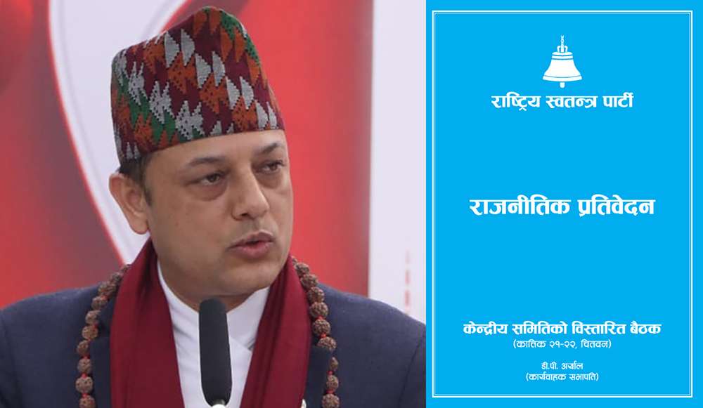 शुक्रबार बिहान शुरु भएको बैठकमा रास्वपाका कार्यवाहक अध्यक्ष डिपी अर्यालले राजनीतिक प्रतिवेदन पेश गरेका छन् ।