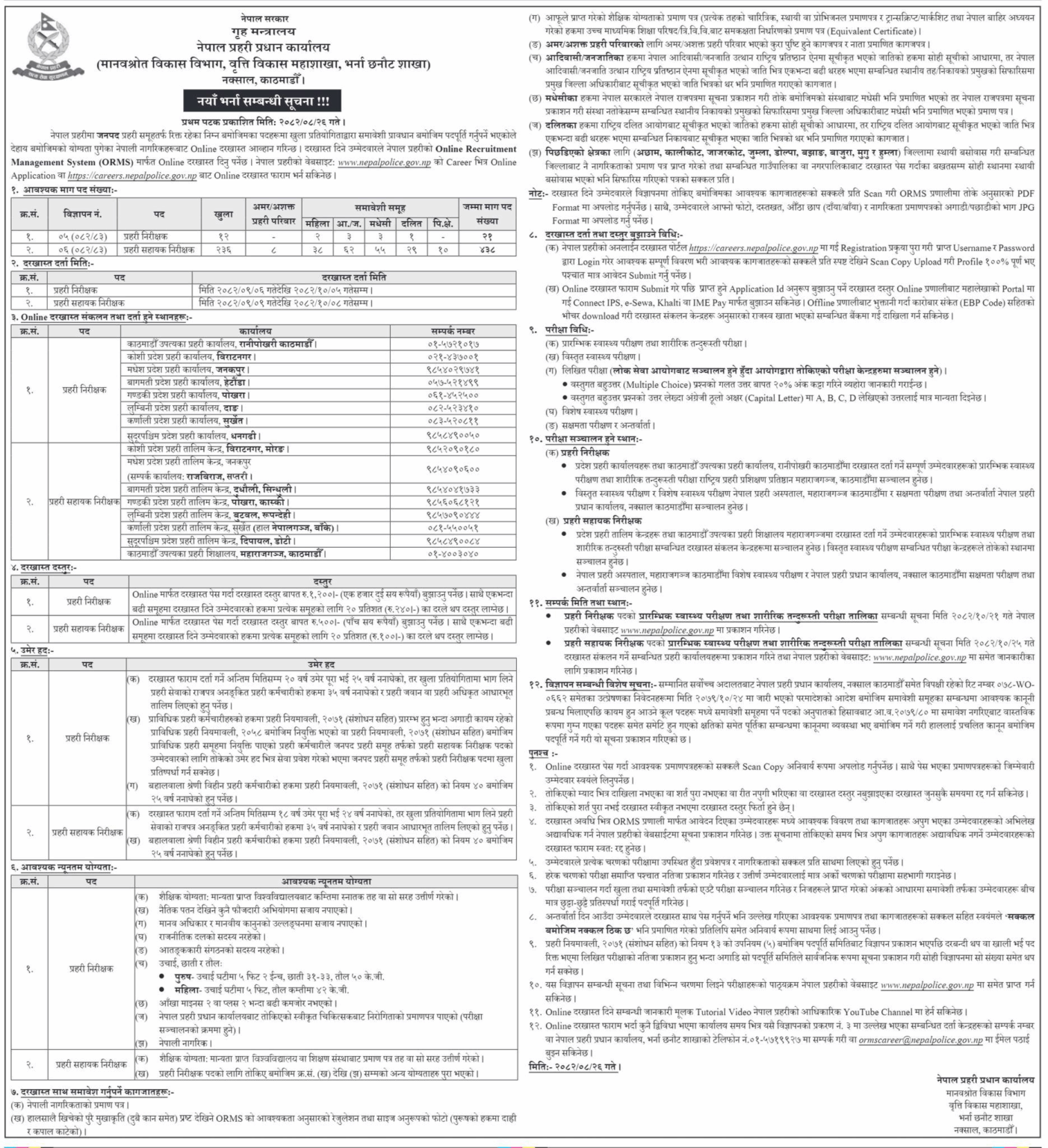 योग्यता पुगेका नागरिकले प्रहरी निरीक्षकमा माग ५ गतेसम्म र सहायक निरीक्षकमा माघ ८ गतेसम्म आवेदन दिन सक्ने सूचनामा उल्लेख छ ।