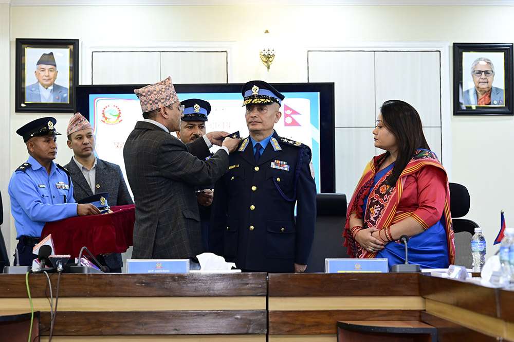 काठमाडौँ । प्रहरी महानिरीक्षक दान बहादुर कार्की नेपाल प्रहरीको ३३औं प्रहरी महानिरीक्षक पदमा पदोन्नति भएका छन् । नेपाल सरकार मन्त्रिपरिषद्को २०८२ कात्तिक २४ गतेको निर्णयअनुसार उनी नेपाल प्रहरीको सर्वोच्च पद प्रहरी महानिरीक्षकमा पदोन्नति भएका हुन् ।