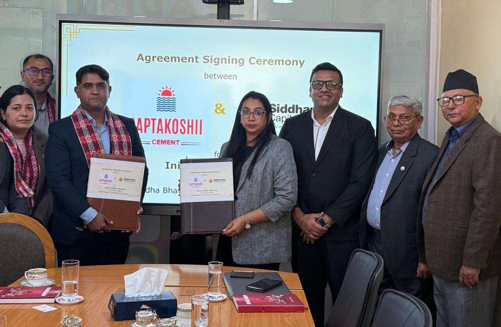 सप्तकोशी सिमेन्टको आइपिओ निष्काशन तथा बिक्रि प्रवन्धकमा सिद्धार्थ क्यापिटलसँग सम्झौता