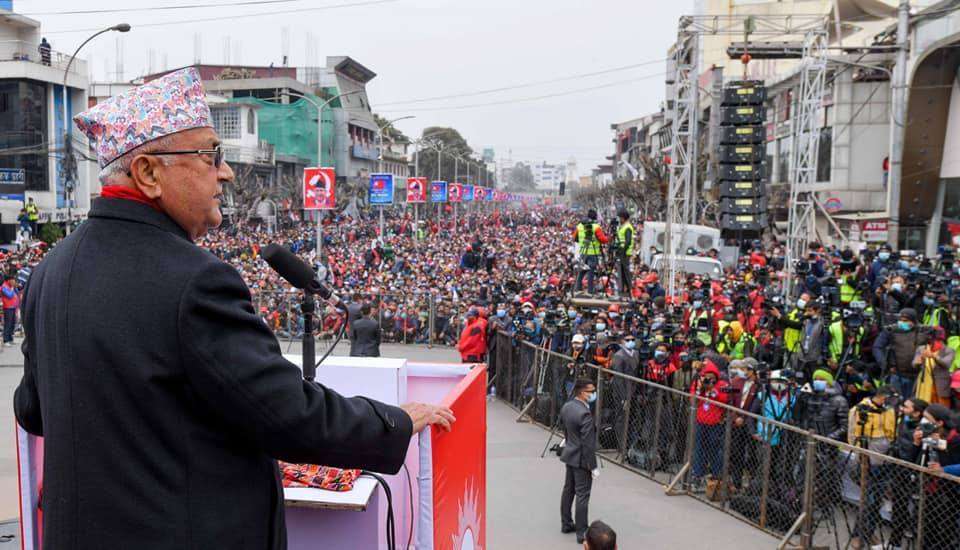 पूर्वप्रधानमन्त्री ओलीले वर्तमान सरकार आतङ्क र त्रासको जगमा संविधान विपरीत निर्मित भएको र सिंहदरबारमा एक प्रकारको ‘बुख्याँचा’ प्रवेश गरेको टिप्पणी गरे।